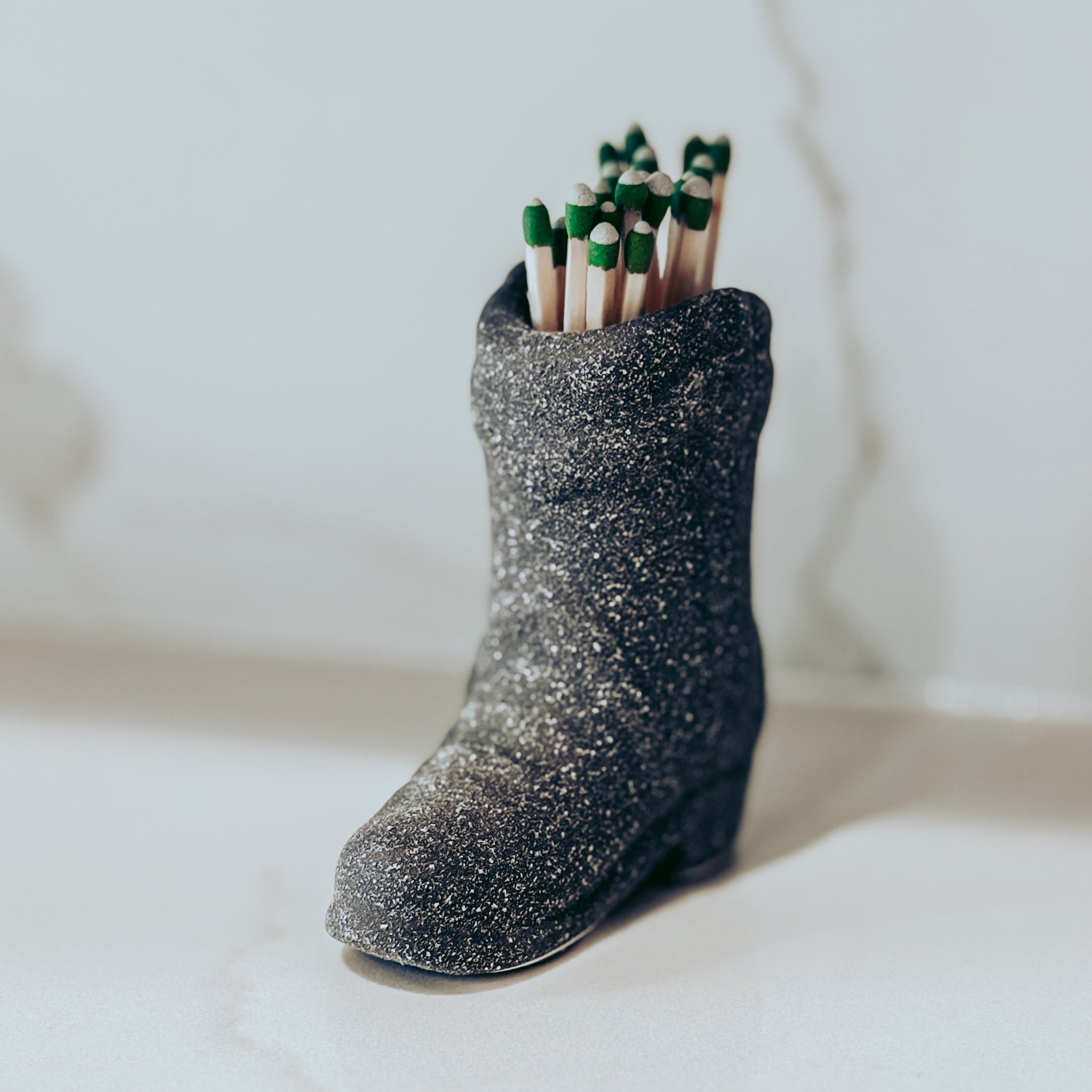Our Ceramic Cowgirl Boot Matchstick Holder is the perfect mix of western charm and everyday function. Shaped like a classic cowgirl boot, it comes with 20 matches tucked inside and a built-in striker on the bottom for easy lighting. Cute, practical, and full of personality.