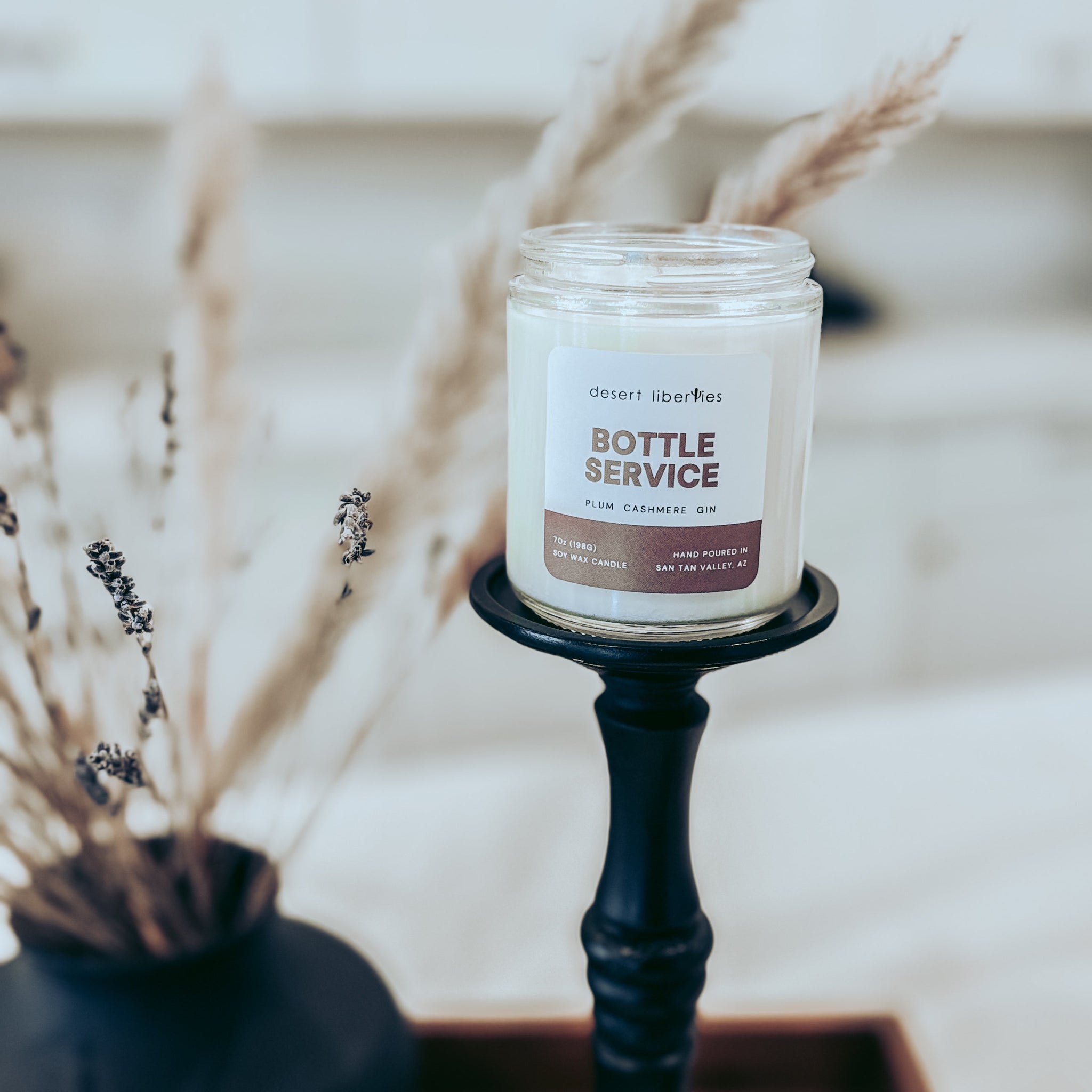 This candle is a VIP experience mixing flirty notes of citrus and plum, paired with an alluring base of vanilla and sugar, rounded out with dry gin, earthy juniper, and light musk for a memorable nightlife feeling.
