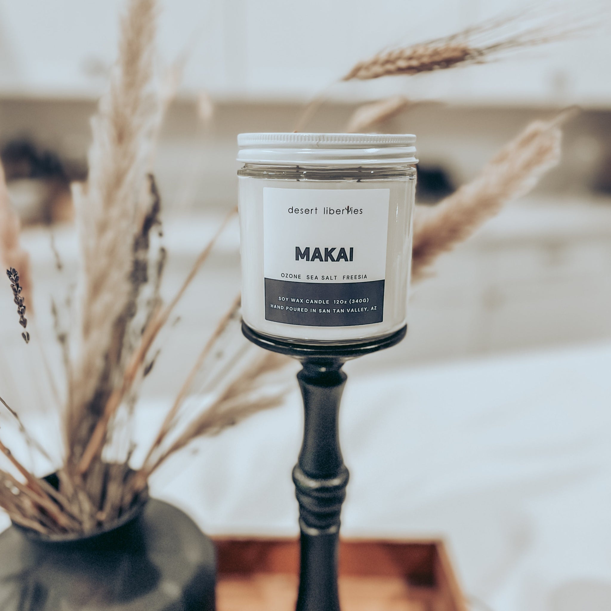 Makai: "Towards The Sea". A word commonly used on the Hawaiian islands when giving directions. Crisp ozonic top notes blend into mid notes of sea salt, lush green leaves, and intoxicating freesia all resting on a relaxing base of tonka bean, amber, and a hint of musk.